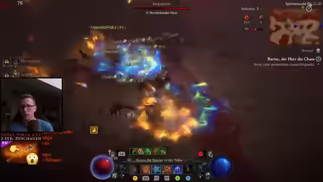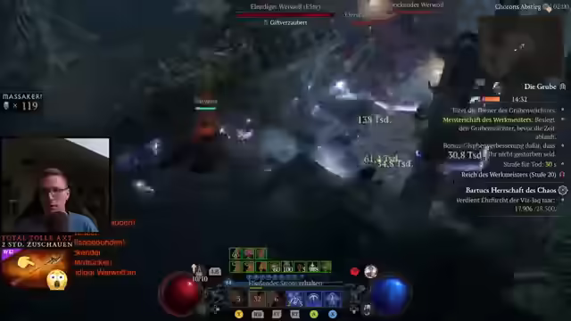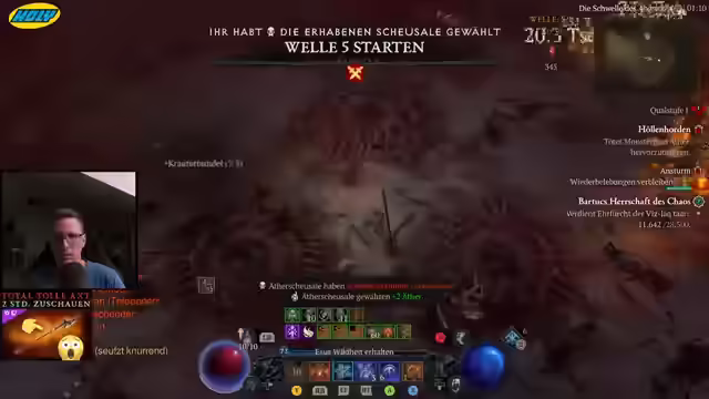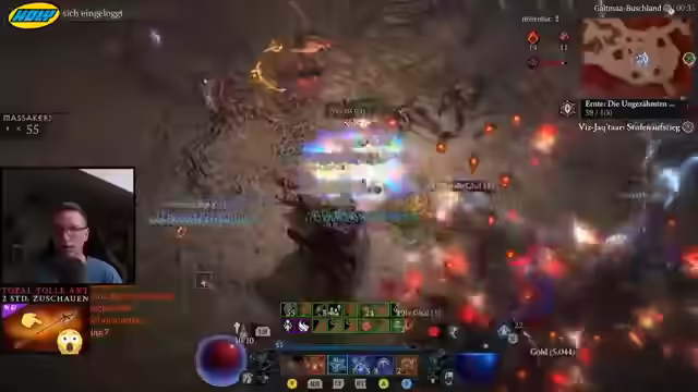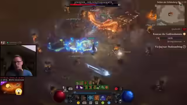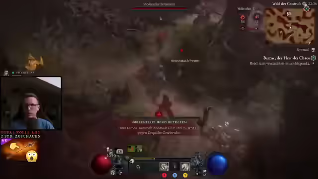 02:09:17In der Helltide-Zone stößt man auf Legion-Ereignisse und Chaosportale unterschiedlicher Seltenheitsstufen. Es wird festgestellt, dass magische Chaosportale bereits eine Herausforderung darstellen. Der Streamer experimentiert mit einer offensiven Skillung ohne defensive Fähigkeiten, was sich als riskant erweist. Trotzdem fühlt sich die Helltide aufregend an, mit hoher Monsterdichte und schnellerem Levelaufstieg. Es werden Season-Quests verfolgt und Goblins gejagt, wobei unerwartet viele Goblins auftauchen, deren Drops unklar sind. Die hohe Aktivität in der Helltide mit Level 15 ist ungewöhnlich. Eigentlich wollte der Streamer nur kurz für den Flüsterbaum in die Helltide, wird aber von den Ereignissen dort gefesselt. Nach Abschluss der Crossplay-Aktivierung und dem Ausgeben der Glut wird die Season-Quest fortgesetzt. Abschließend wird die Chaosmenü-Option 'explosive Kombinationen' als besonders stark hervorgehoben.