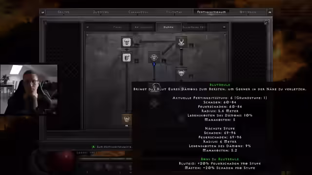 06:36:39Der Stream konzentriert sich auf den wertvollen Schmied-Söldner, der aufgrund seiner Fähigkeit mit einem Machtsöldner eine Fanatismus-Aura verleiht. Der Streamer betont die Wichtigkeit, diesen Söldner zu erhalten, da sein Verlust durch einen eigenen Tod sehr wahrscheinlich ist. Es werden die verschiedenen Dämonen, die durch den Verzehren-Skill beschworen werden können, und ihre spezifischen Boni für unterschiedliche Builds (Feuer, Magie, physisch) erklärt.