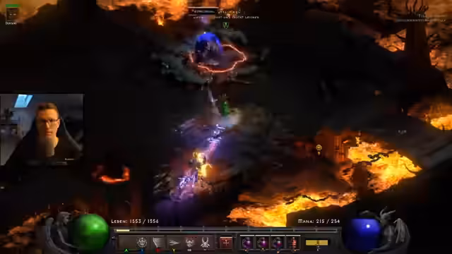 09:14:22Der Söldner überlebt den Flammenfluss, indem der Schmied immer vorgeschickt wird. Der Streamer braucht keine Smiter mehr, da der Warlock die Aufgabe erfüllen kann. Das Hauptziel ist es, für den Endgame-build eine Fackel (Torch) zu farmen, was extrem viel Rune-Farmung erfordert. Die Terrorisierung der Zone wird ausgenutzt, da nun auch Trash-Mobs die höchste Treasure Class droppen können.