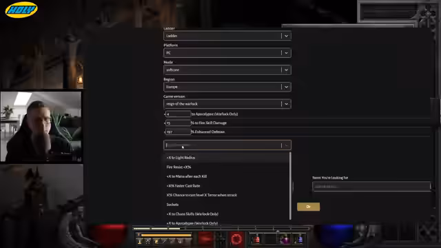 00:15:38Der Streamer startet in einem neuen Ladder-Modus und beabsichtigt, durch das Farmen von Chaos-SancRuns (CS) in der Hölle Items zu farmen. Gestern verlief die Farmung in der ersten Hälfte, dem Albtraum, noch gut, wurde aber in der Hölle unproduktiv. Als Warlock-Level 75 ist das Ziel, eine gute Rüstung zu bauen, wofür eine dreifach gesockelte Rüstung benötigt wird, die hauptsächlich im CS zu finden ist.