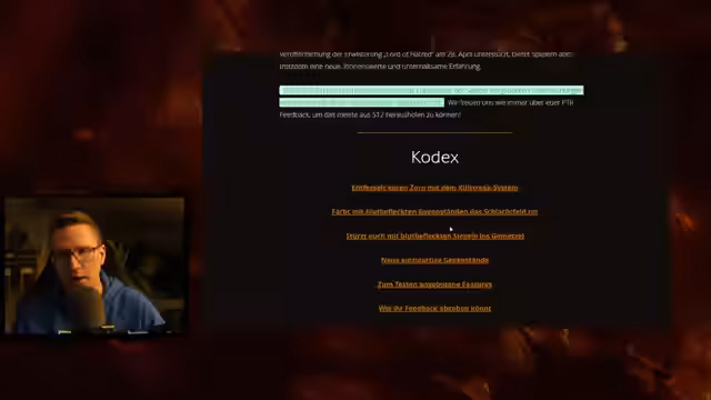 02:07:24Im Stream tauchen unerwartete Informationen zu Diablo 4 auf. Der Streamer bemerkt den PTR für Patch 2.6, der kurz zuvor angekündigt wurde. Er analysiert die News zu der geplanten Season 12, die als kurze Mini-Season mit dem Starttermin Anfang März beschrieben wird. Besonders faszinieren ihn die neuen Mechaniken wie das Killstreak-System, blutbefleckte Gegenstände und neue Siegel für Dungeons und Bosse, die das Gameplay für ihn deutlich attraktiver machen.