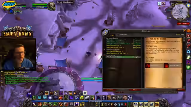 04:52:21Im Stream wird die Seltenheit von Warlocks diskutiert, die seltener als Druiden seien. Nachdem der Streamer eine Elite-Quest erfolgreich abgeschlossen hat, betont er den enormen Erfahrungsgewinn von 20.000 XP durch Hin- und Herfliegen. Dies beeindruckt ihn besonders, da die folgenden Questen nur noch geringe XP-Beträge versprechen. Die darauffolgende Dungeon-Quest kann er nicht mehr bearbeiten, da er sich bereits in Desolace befindet und den Helm für Graf-Sarkamus übergeben möchte.
