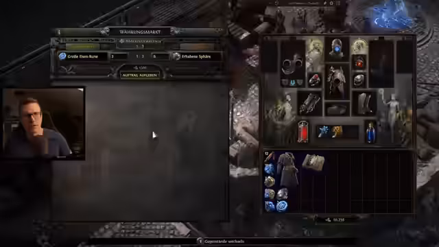 04:50:00Der Streamer handelt aktiv am Markt, um Eisenrunen für physischen Schaden zu beschaffen, und reflektiert über Preisunterschiede zwischen mittleren und großen Runen. Nach Verhandlungen und Verkäufen von überschüssigen Items erhält er endlich neue Schuhe mit 20% Bewegungstempo und Lebensbonus, ein entscheidendes Upgrade. Anschließend verbessert er seine Rüstung mit Exalted Orbs zu einem Triple-Resi-Set mit hohem Max-Life und Energieschild. Er plant weitere Optimierungen bei Ringen und Amuletten, während er die wirtschaftliche Mechanik des Spielerverkehrs und Item-Comparisons kommentiert.