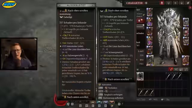 01:30:43Der Streamer diskutiert das Heiligen von Items, insbesondere Griswold-Teile. Er erwähnt, dass selbst schlechte Items durch Heiligen verbessert werden können und potenziell bessere Werte als Maxroll-Items liefern könnten. Dabei geht es um Eigenschaften wie Schwergewicht und Linie durchbrechen, wobei Schwergewicht aufgrund besserer Qualitätssteigerung bevorzugt wird. Die Kosten für Heiligung sind vernachlässigbar, was das System attraktiv macht.