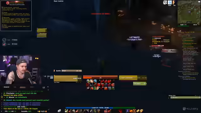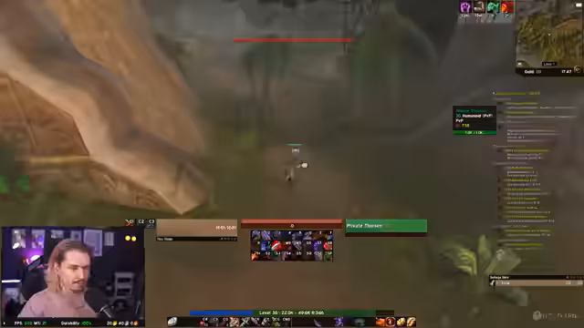11:35:38Der Streamer schildert seine Frustration über die aktuelle Questsituation. Er empfindet Gebiete wie Sumpf der Sorgen als zu gefährlich durch PvP-Aktivitäten, während andere Gebiete wie Das Arathihochland oder Die Verlassenen zu niedriglevelig sind. Er ist der Meinung, dass es kein ideales Gebiet gibt, um viele Quests auf einmal zu erledigen, und erwägt daher, vermehrt Dungeons wie das Schergrat zu besuchen, um Fortschritt zu machen.