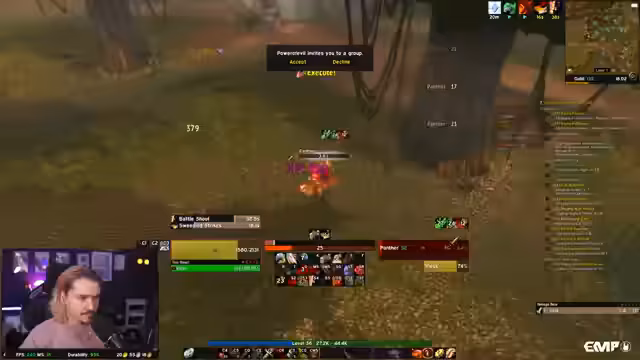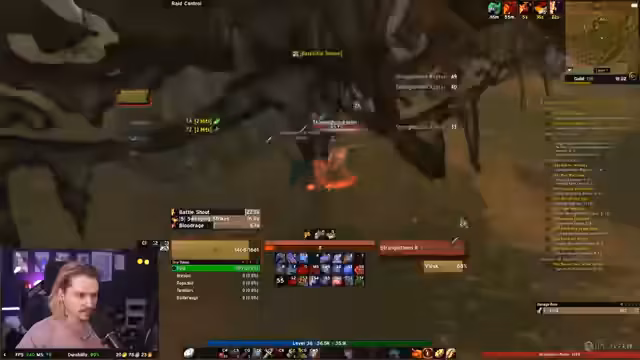 04:53:51Während des Laufs durch eine Zone kommt es zu einem kritischen Vorfall. Der Streamer und seine Gruppe geraten in einen Spawn von Orcs, der als 'kompletter Respawn' beschrieben wird. Sie werden überwältigt und der Streamer stirbt. Der Vorfall wird als sehr intensiv beschrieben, mit Aufforderungen zum Laufen und dem Versuch, sich durch Nova-Spells zu retten, was jedoch scheitert.