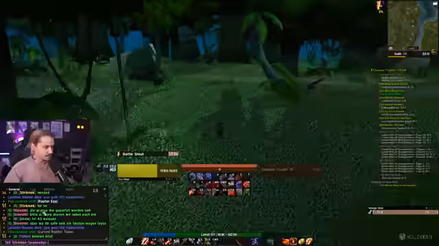 06:39:52Nach dem Kloster-Raid wird im Hochland weiter gelevelt und Jagd auf Raptoren und Panther gemacht. Der Streamer spricht über die schlechten Laufwege und den fehlenden Spaß an der Krokodil-Jagd. Es tauchen Probleme mit dem Gold auf, da er Leuten im Team 15 Gold schuldet und sich überlegte, ein Rent-a-Tank-Schema einzuführen, um schnell an Gold zu kommen.