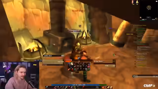 01:32:23Vor dem eigentlichen Dungeon-Run wird auf das Leveln der Charaktere geachtet. Tolkien ist schon Stufe 39 und kann anderen Spielern helfen, ebenfalls auf Level 39 zu kommen, um den Dungeon effektiver zu bestehen. Die Organisation von World-Buffs wird diskutiert. Tolkien plant, einen Vorrat an Port-Steinen aufzubewahren, um Gildenmitgliedern, die den Buff benötigen, helfen zu können. Dies unterstreicht den kollaborativen Charakter innerhalb der Gilde.