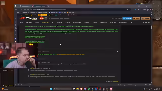 02:22:31Nachdem die erste Hürde des Aufstiegs genommen ist, geht es um das koordinierte Annehmen und Abgeben einer Quest innerhalb der Gruppe. Es kommt zu Verwirrung, da nicht alle Gruppenmitglieder die gleiche Stufe haben oder die Quest bereits abgeschlossen haben. Der Streamer organisiert die Gruppenmitglieder, um sicherzustellen, dass alle die Quest annehmen und sie schließlich gemeinsam an einer Rune abgeben können. Danach werden Pläne für einen gemeinsamen Dungeon-Besuch (UBRS) geschmiedet, wobei die Verfügbarkeit von Tanks kritisch diskutiert wird.