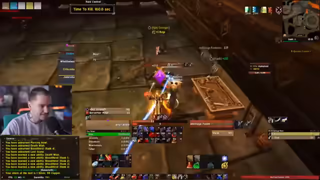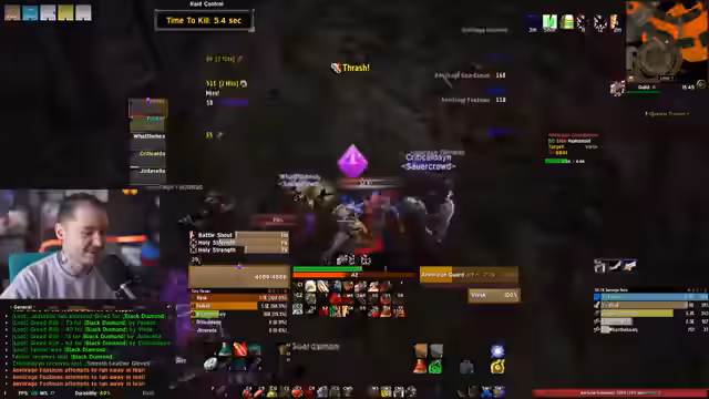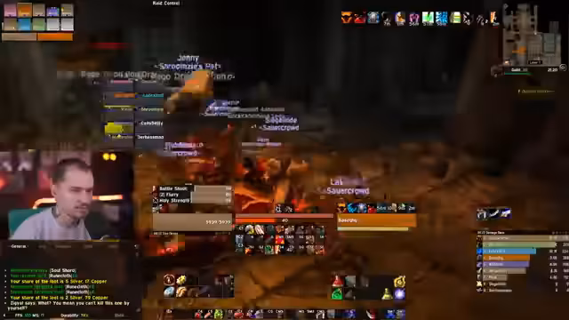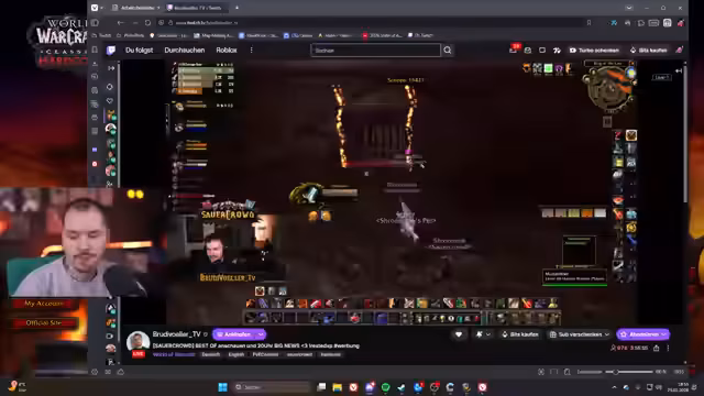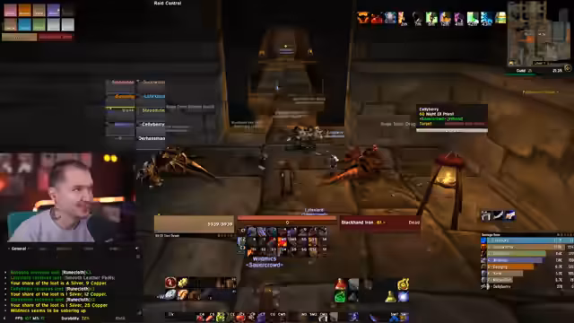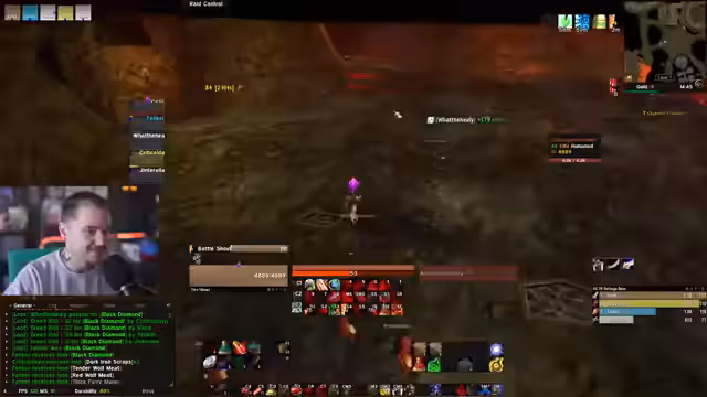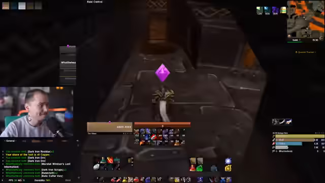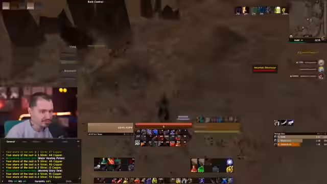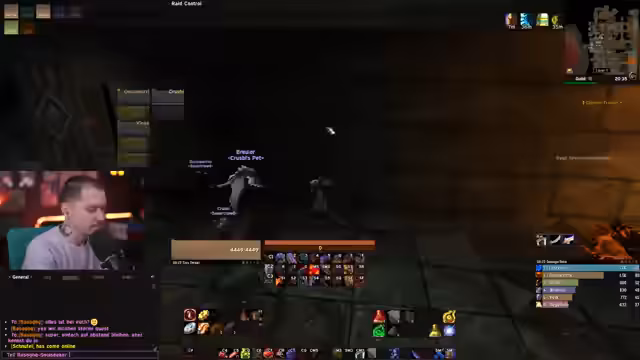 00:47:24Der Fokus verlagert sich auf den aktuellen Bosskampf. Der Streamer gibt konkrete taktische Anweisungen an die Mitspieler, um die Mechanik des Bosses zu meistern. Nach dem Sieg wird über das Loot gesprochen, wobei ein Missverständnis über den Need-or-Greed-Mechanismus entsteht. Es wird über den Wert der gefundenen Items und den Goldmangel gesprochen, im Vergleich zum späteren Spiel World of Warcraft Retail, wo durch Quests deutlich mehr Gold verdient werden kann.