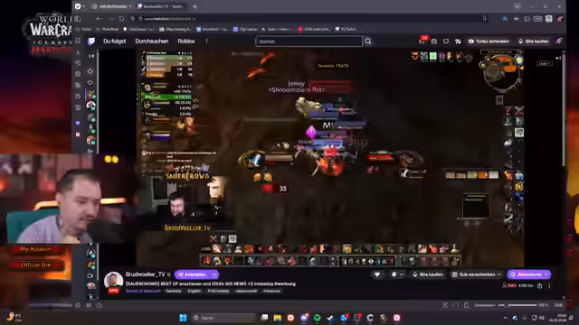 00:30:20Es wird die Erfahrung und das Selbstbewusstsein eines Spielers als Tank diskutiert. Obwohl er sich unsicher war, fühlt er sich mittlerweile sicherer in seiner Rolle, besonders bei Bosskämpfen wie Onyxia. Ein Konflikt aus einer früheren Dungeon-Session wird angesprochen, bei dem ein Fehler im Kampf thematisiert wird, wobei sich beide Seiten verteidigen und die Kommunikationsprobleme während des Kampfes offenlegen. Dies führt zu einem Streit über Schuldfragen.