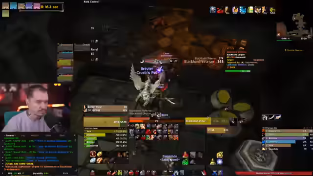 06:46:58Die Gruppe betritt nun UBRS und beginnt mit der Kämpfe gegen die Mobs vor dem ersten Boss. Der Streamer beschreibt die Pull-Strategie und die Verteilung der Rollen. Es wird ein 'CC Theaterstück' erwähnt, das die Kontrolle der Gegner erfordert. Die Gruppe muss aufmerksam bleiben, da jederzeit Assassinen aus dem Hinterhalt auftauchen können, und der Streamer legt Falle an kritischen Punkten, um diese abzuwehren.