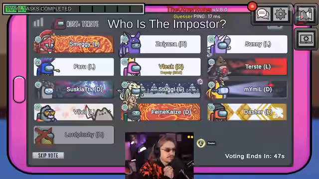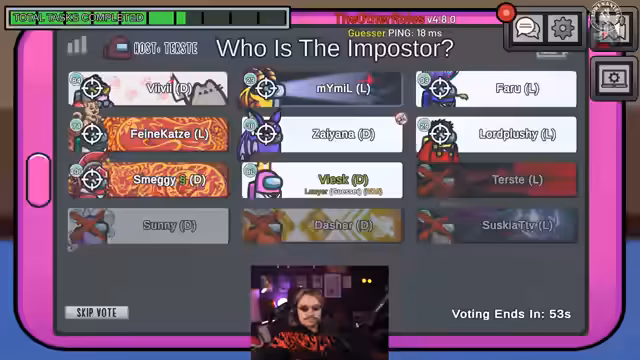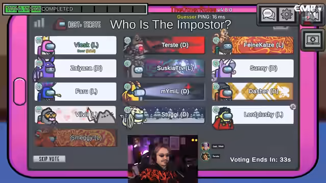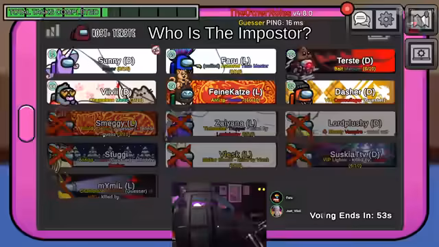 00:40:18Die ersten Among Us-Runden beginnen, wobei der Streamer als "Lawyer" die Aufgabe hat, einen anderen Spieler zu verteidigen. Die Runden sind geprägt von wilden Diskussionen und Spekulationen über die Rollen der Spieler, darunter Bomber, Ninja, Vampir und Trapper. Der Streamer zeigt sich überrascht von der Komplexität der Rollen und der Dynamik in der Lobby. Er versucht, die Bewegungen der Spieler zu verfolgen und logische Schlussfolgerungen zu ziehen, um die Imposter zu identifizieren. Trotz seiner Müdigkeit zeigt er sich engagiert und amüsiert über die chaotischen Situationen, die in den Meetings entstehen. Die technischen Probleme eines Mitspielers (Stugi) mit dem Mikrofon sorgen für zusätzliche humorvolle Einlagen, da dieser gezwungen ist, seine Informationen schriftlich zu übermitteln.