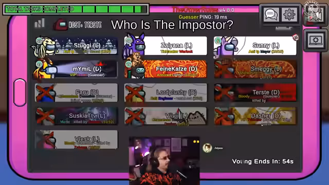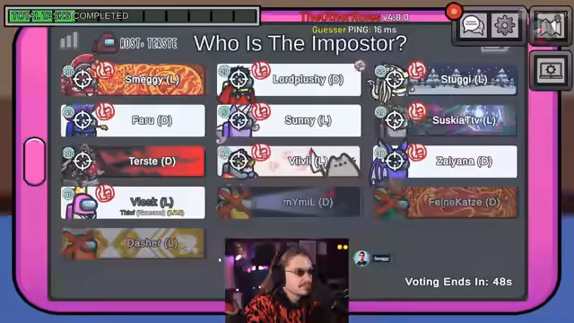 01:28:30Zu Beginn des Streamings werden die verschiedenen Rollen im Spiel Among Us diskutiert. Der Streamer berichtet davon, die sogenannte 'scheiß Rolle' erhalten und schnellstmöglich wieder abgelegt zu haben, um sicherere Rollen zu erhalten. Im weiteren Verlauf kommt es zu einem Vorfall, bei dem eine Spielerin namens Terz dem Streamer diese Rolle gibt, was zu einer humorvollen Konfrontation führt. Die Spieler analysieren ihre Bewegungen und diskutieren über die Taktiken des Gegners, wobei der Streamer seine Rolle als Sheriff erwähnt und seine Absicht schildert, andere Spieler auf verdächtige Aktivitäten hinzuweisen.