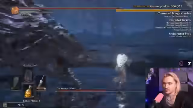 05:11:33Der Streamer beschließt, kurz vor dem Abschluss des Trainings noch ein bisschen zu leveln und macht einen Abstecher zur Mimic in Erythal. Er vergleicht seine Punkte mit denen der anderen Teilnehmer Leon und Lopapna, wobei er feststellt, dass Leon mit 728 Punkten nicht mehr einholbar ist. Nachdem die Mimic gefunden ist, geht es direkt weiter mit dem Ziel Archdragon Peak, um einen Bonfire zu holen.