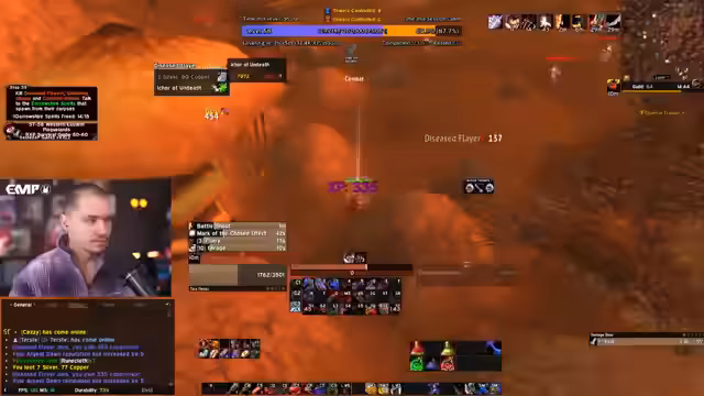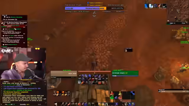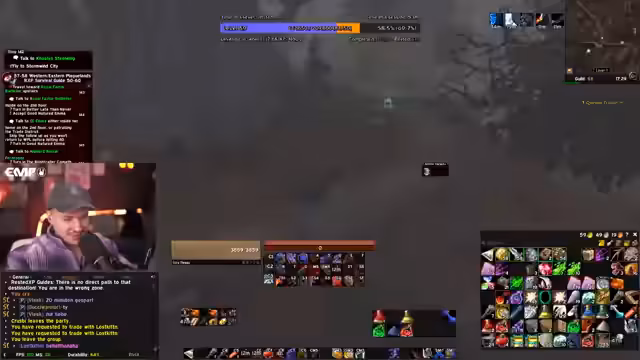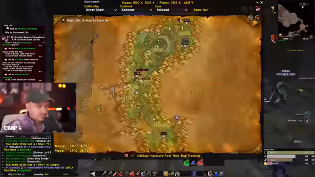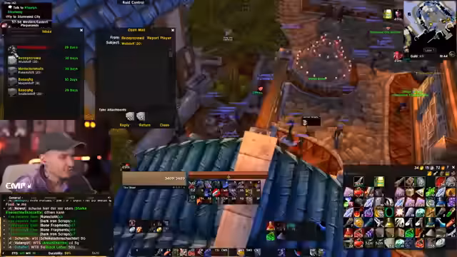 00:06:47Ein Hauptthema des Streams ist die wachsende Anspannung und der Stress des Streamers bezüglich eines bevorstehenden Raids. Er hat Angst, aufgrund von möglicherweise zu spät erreichtem Level 60 nicht für den Raid berücksichtigt zu werden, obwohl er viel Zeit in das Event investiert hat und die Gildenleitung dringend Tanks benötigte. Die Ungewissheit darüber, nach welchen Kriterien die Teilnehmer ausgewählt werden, bereibt ihn stark und führt dazu, dass er heute unter Druck Level 60 erreichen will.