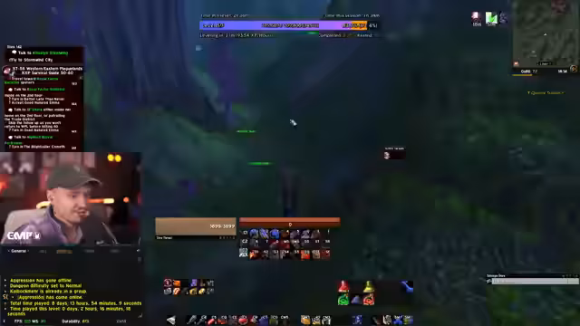 06:15:12Der Streamer berichtet über einen schwierigen Questabschnitt in den Eastern Plaguelands, bei dem er eine Gruppe aus einem Zwerg und drei Begleitern unterschätzt hat und schnell auf 40% Lebenspunkte gefallen ist. Um die Situation zu meistern, muss er sich kurz abmelden, um Essen zu bestellen, und kehrt nach kurzer Abwesenheit zum Spiel zurück, um die Quests fortzusetzen.