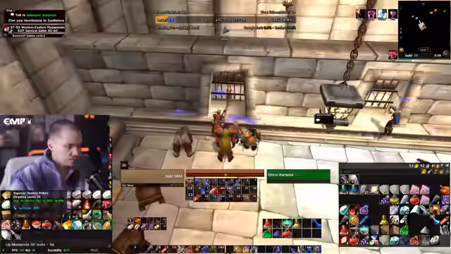 00:01:00Der Stream startet mit der Ankündigung des Ziels, heute Level 60 zu erreichen. Davor werden Gegenstände im Inventar sortiert und überflüssige Items wie Runenstoff, Wolle und verschiedene Tränke verkauft oder weggeworfen. Die Quests für Western und Eastern Plaguelands sind der Fokus, wofür spezielle Materialien wie Thorium Bars und High Explosive Bombs benötigt werden. Es wird betont, dass das Leveln heute ohne Bummeln, also ohne Ablenkungen oder unproduktive Pausen, erfolgen muss.