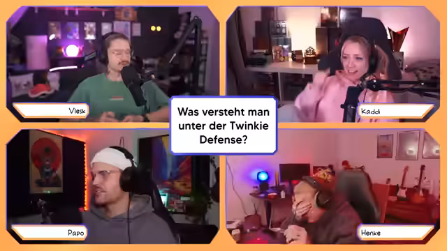 04:07:28Die vierte Frage lautet: „Was versteht man unter der Twinkie-Defense?“ Kristo assoziiert den Begriff sofort mit dem Film Zombieland, was jedoch verneint wird. Es wird spekuliert, ob es sich um eine Verteidigungsstrategie im American Football oder Rugby handelt, was ebenfalls falsch ist. Die Teilnehmer fragen, ob es etwas mit der Süßigkeit Twinkie zu tun hat, was im weitesten Sinne bejaht wird. Es wird vermutet, dass es sich um einen Präzedenzfall in einem Gerichtsprozess handelt, bei dem die Firma Twinkie involviert war und dessen Verteidigung so gut war, dass der Fall nun als Vorbild dient. Diese Theorie ist nicht ganz falsch, aber auch nicht die vollständige Antwort. Es wird überlegt, ob es um eine Limitierung von Twinkies in Supermärkten ging oder ob die Struktur der Süßigkeit eine Rolle spielt. Der Streamer bestätigt, dass es sich um eine gerichtliche Angelegenheit handelt. Die Idee, dass Twinkies zum Schmuggel von Gegenständen in Gefängnisse verwendet wurden, wird als unwahrscheinlich abgetan. Die Diskussion dreht sich um eine mögliche Strategie, die von den Anwälten von Twinkies vor Gericht angewendet wurde, um die Firma zu verteidigen, was jedoch verneint wird.