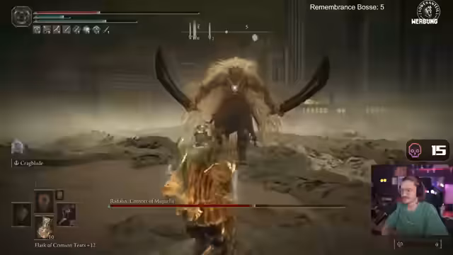 00:37:21Nach mehreren Versuchen und der Verbesserung seiner Dodging-Techniken, insbesondere bei Radahns Stampf-Kombination, gelingt es dem Streamer, Radahn zu besiegen. Er stellt fest, dass die zweite Phase des Kampfes heute viel entspannter war und er auch etwas Glück mit den Kombinationen hatte, die Radahn ausführte. Der Sieg über Radahn unterstreicht für ihn die Bedeutung von ausreichend Schlaf, da er den Kampf im übermüdeten Zustand als „betrunken am PC“ beschreibt. Er vergleicht die Schwierigkeit von Radahn mit der von Malenia und schätzt, dass er insgesamt zwischen 150 und 200 Versuche für Radahn benötigt hat. Die erste Phase des Kampfes empfand er als sehr cool und spaßig, während die zweite Phase aufgrund der Blitze und der schlechten Sichtverhältnisse zum Lernen schwieriger war. Nach dem Sieg über Radahn plant er, weitere Bosse wie Bail und Mitra anzugehen, da er noch zwei Stunden Zeit bis zu „Genial Daneben“ hat.