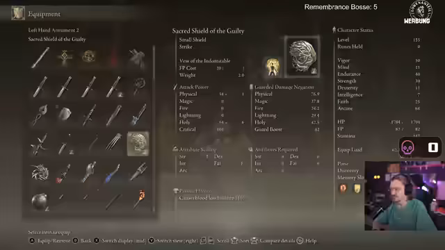 00:04:41Nach einem anstrengenden 22,5-Stunden-Stream und nur vier Stunden Schlaf, fühlt sich der Streamer immer noch erschöpft, entschließt sich aber, den Kampf gegen Radahn vor dem geplanten „Genial Daneben“-Event um 20 Uhr anzugehen. Er plant, die verbleibenden drei Stunden intensiv in den Kampf zu investieren, da er beim letzten Versuch, bedingt durch extreme Müdigkeit nach 24 Stunden Wachsein, keine Chance hatte. Er erinnert sich an mindestens 100 Versuche im letzten Stream und startet den Deathcounter heute bei null. Für den aktuellen Versuch hat er leichte Anpassungen an seiner Ausrüstung vorgenommen, darunter mehr Rüstung und eine Umstellung seines Builds auf „Arcane“, um die Blutungseffekte seiner Waffe zu verstärken. Zusätzlich nutzt er ein Schild mit der „WoW of the Indomitable Ash of War“, um eine Alternative zum Ausweichen zu haben und Invincibility Frames zu nutzen. Er bittet einen Mod, den Deathcounter zu übernehmen, um sich voll auf den Kampf konzentrieren zu können.