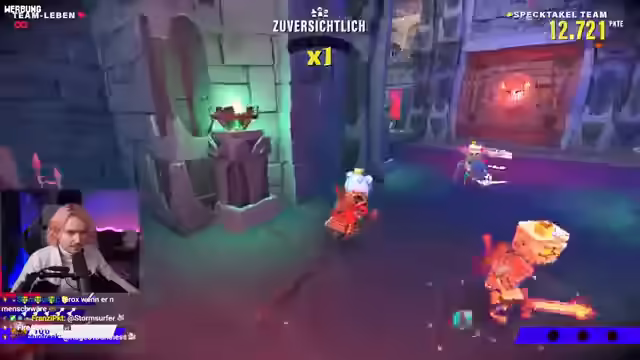 05:12:55Es wird erklärt, dass sie ein Koop-Dungeon-Game spielen, wo sie in verschiedenen Dungeons gegen Gegner kämpfen und ins Ziel kommen müssen. Es gibt verschiedene Moden, zum Beispiel Kampf oder Rätsel oder Jump'n'Run. Je nachdem wie gut sie das machen, kriegen sie extra Geld und so Zeug. Ein Spieler ist der unverbrauchte Klebestreifen. Ein anderer ist der romantische Klebestreifen. Die Titel kann man bei der Customization einfach einstellen. Ein Spieler hat noch eine Ente. Die Gruppe ist verwirrt, was sie gerade machen müssen. Sie haben die Tür da drüben aufgemacht. Es sind Klingen da. Es ist ein Jump and run. Hier oben ist auch noch Heilung. Ein Spieler macht den Schalter. Die Gruppe kann auch die Kisten kaputt machen. Ein Spieler fragt, warum der Fall nach unten ist. Sie müssen zurück. Hier war so eine Tür, die mit dem Schalter aufging. Ein Spieler überholt den anderen. Ein Spieler fragt, wie man sich ducken kann. Es ist ein Schalter da. Ein Spieler macht das Krönchen hier oben. Ein Spieler geht sich immer noch ein Herz. Ein Spieler ist runtergefallen.