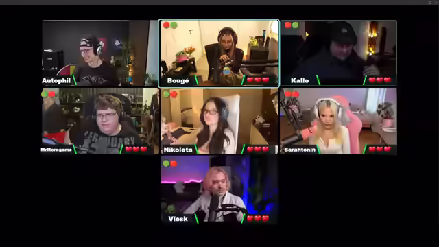 01:42:57Nachdem die letzte Frage beantwortet wurde, diskutieren die Teilnehmer, wer gevotet werden soll. Nicoletta und Kalle haben Fragen, die schwer zu bewerten sind, da sie persönliches Wissen über die anderen Spieler erfordern. Es wird diskutiert, wer Fehler gemacht hat und warum. Die Teilnehmer schreiben ihre Votes auf. Kalle erhält die meisten Stimmen und scheidet aus. Die nächste Runde beginnt mit einer Frage an Bouget nach den Leveln, auf denen man die Ult upgraden kann. Kalle wird nach der Anzahl der T2-Boots gefragt und liegt mit seiner Antwort knapp daneben. Mori muss zwei Champs aus Shurima nennen und punktet. Nicoletta wird gefragt, welches Item am meisten AP gibt und antwortet korrekt. Sarah wird nach dem chemischen Element mit dem Symbol FE gefragt und punktet. Vlesk soll ein jährliches, saisonales Event in League of Legends nennen und erfindet etwas. Bouget wird gefragt, mit welchem Champion Mbesser verwandt ist, und antwortet nach etwas Hilfe richtig. Kalle muss zwei Champs aus der Lehre nennen und punktet. Mori wird gefragt, welcher League-Champion der beste zum Snowballen ist und antwortet richtig. Nicoletta soll zwei Champions mit Bienenskin nennen und punktet. Sarah wird nach dem Preis eines Health Potions gefragt und antwortet korrekt. Vlesk wird nach dem Erscheinungsdatum von Arcane Staffel 1 gefragt und antwortet richtig.