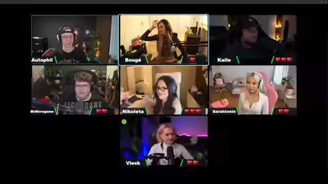 01:14:09Die Spielrunde beginnt mit Fragen an die Teilnehmer. Nicoletta wird gefragt, wie lange der Sabaton von Mr. Morgame ging, und liegt mit ihrer Antwort von 367 Tagen knapp daneben. Sarah hingegen punktet bei einer Frage zu Schere, Stein, Papier und einem passenden League-Champion. Vlesk wird nach einem Champion gefragt, der übersetzt ein verdrehtes Schicksal ist, und antwortet korrekt. Kalle muss den neuesten Champion aus LOL nennen, der auch in Arcane vorkommt, scheitert aber. Mori wird nach zwei Champions gefragt, die seit Release spielbar sind, und nennt Ash richtig, aber Garen falsch. Nicoletta soll den Champion nennen, der zuletzt in alphabetischer Reihenfolge kommt, und antwortet falsch. Sarah punktet mit der Frage nach einer Supportfähigkeit mit globaler Heilung. Es folgt eine Frage, wer von den Teilnehmern schon mal bei 'Der Dümmste fliegt' dabei war, die niemand richtig beantwortet. Bouget wird nach dem Bruder von Yasuo gefragt. Kalle muss die Anzahl der Spieler in einer Arena-Lobby nennen und antwortet richtig. Mori beendet die Fragerunde mit der Frage nach dem Endboss bei Doombots und punktet. Sarah und Kalle erhalten ein Schild und sind somit vor dem Voting geschützt.