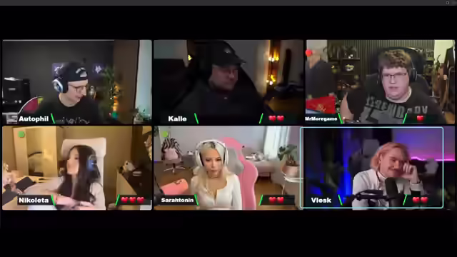 02:09:47Nicoletta befindet sich mit drei Leben in einer prekären Lage und äußert ihre Sorge, aufgrund der Nähe zur "Sonne" (des Wettbewerbs) falsche Antworten zu geben. Es folgen Fragen zu League of Legends Champions. Zunächst soll Nicoletta den Champion nennen, der als "der Boss" bekannt ist, woraufhin sie Melfi als Antwort gibt, aber die richtige Antwort ist Zed. Es wird kurz diskutiert, ob Zed im Basis-Skin oder im Traditional-Skin besser aussieht. Danach wird Sarah gefragt, für welchen Playstyle "The Boss" bekannt ist, wobei "taktisches Sterben" als Antwort erwartet wird, was jedoch nicht ausreicht. Es folgt die Frage an Vlesk nach dem Namen einer der Aram-Maps, die er korrekt mit "Howling Abyss" beantwortet. Abschließend wird Kalle gefragt, welches Genre die High-Noon-Skins repräsentieren, woraufhin er "Wilder Westen Cowboy-Kram" antwortet, was als richtig gewertet wird.