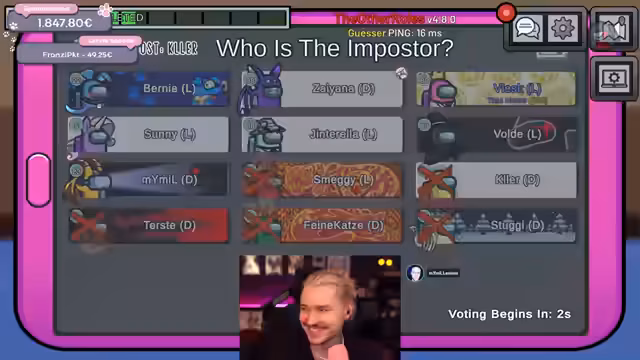 00:44:00Während des Spiels analysiert der Streamer die Bewegungen und Aktionen der Mitspieler. Verdächtigungen werden ausgesprochen, basierend auf gesehenen Spuren, verzögertem Verhalten und scheinbaren Widersprüchen in den Aussagen der Spieler. Es kommt zu hitzigen Diskussionen über mögliche Killerrollen und Verräter im Spiel, wobei der Streamer versucht, durch Logik und Zeitangaben die wahre Identität des Imposters aufzuklären.