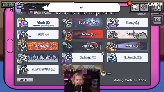 02:11:44In der Endphase des Spiels konzentrieren sich die Verdächtigungen auf Vivi, da sie sich hinter einem Stein versteckte und verdächtiges Verhalten zeigte. Der Streamer kommt zu dem Schluss, dass Vivi mit hoher Wahrscheinlichkeit der Imposter ist, und bittet die anderen, zu skippen. Nach dem Tod von Thorsten, der als Trapper enttarnt wurde, bleibt nur noch Zayana als möglicher Böser übrig. In der letzten Verhandlung wird versucht, die Rolle von Zayana durch einen Ghosting-Versuch zu bestätigen, bevor das Spiel endet.