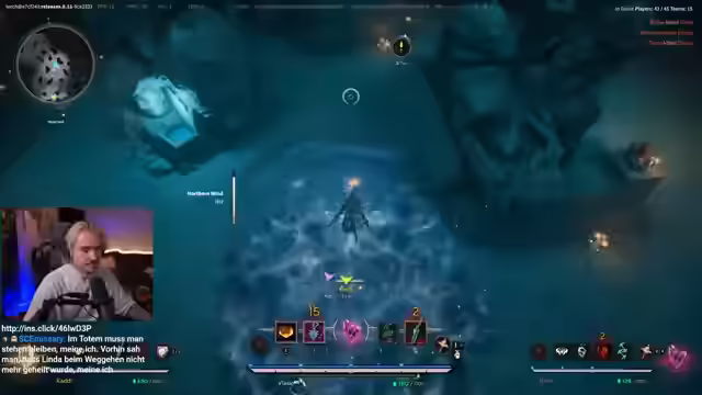 02:39:31Es wird überlegt, Items zu droppen. Die Anzahl der Spieler auf den einzelnen Ebenen variiert. Es wird betont, dass alle Teams gleichzeitig auf die zweite Ebene müssen. Das Team versucht, zusammenzubleiben. Es werden verschiedene Items gefunden und ihre Eigenschaften diskutiert. Die Farben der Items haben keine Wertigkeit, sondern repräsentieren verschiedene Charaktere. Es wird über den Schaden der Waffen gesprochen. Ein großer, roter Gegner wird entdeckt, vor dem man fliehen sollte. Ein Reliquienschrein wird gefunden. Es wird versucht, den großen Gegner abzulenken, um in Ruhe looten zu können. Es wird festgestellt, dass der Gegner nur dazu da ist, zu nerven. Das Team versucht, so viele Irena-Items wie möglich zu sammeln. Ein anderes Team wird entdeckt und ein Kampf beginnt. Ein Spieler ist AFK und wird getötet. Set-Boni werden aktiviert. Das Team muss einen Kreis finden, um in die nächste Ebene zu gelangen. Der Weg dorthin ist weit und es wird knapp mit der Zeit. Ein anderes Team befindet sich bereits im Kreis. Es kommt zum Kampf, bei dem ein Spieler stirbt. Das Team scheitert knapp am Aufstieg in die nächste Ebene.