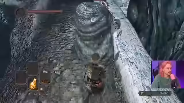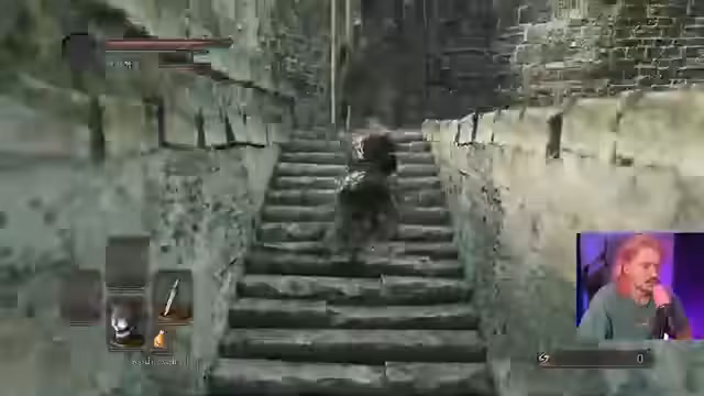 01:00:51Nach der Wahl des geflügelten Speers als neue Hauptwaffe beginnt der Streamer, dessen Moveset zu testen. Er startet einen kurzen Trainingslauf in Dark Souls 2, um sich mit der Waffe vertraut zu machen. Das Ziel ist es, den geflügelten Speer so früh wie möglich zu besorgen, um den Rest des Spiels damit zu meistern. Der Lauf wird bewusst kurz gehalten, da der Streamer nicht vollständig durchspielen wird.