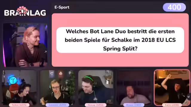 00:18:37Der Stream startet mit epischer Musik und einem freundlichen Gruß an den Chat. Der Moderator begrüßt die Zuschauer und kündigt den Brainlag-Stream für League of Legends an. Er erwähnt, dass dies das erste Brainlag ohne Florian ist und daher technische Risiken bestehen. Die Teilnehmer Tolkien, Autofill, Noway, Bröki und Karni werden vorgestellt, wobei jede Rolle im Team besetzt ist. Der Chat wird als wichtig für das Quizformat betont, da technische Unterstützung fehlt und die Community selbst für Ordnung sorgen soll.
