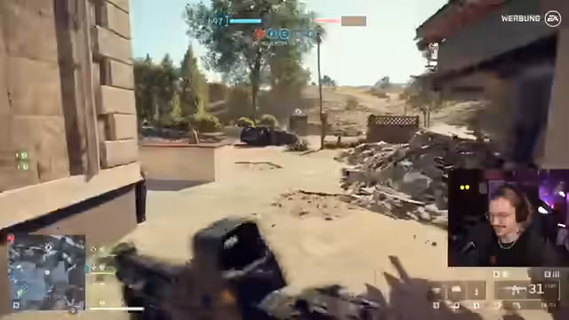 00:13:25Nach dem Team Deathmatch, das als Aufwärmrunde diente, wechselte die Gruppe in den Battle Royale Modus von Battlefield 6. Dieser Modus wurde als sehr angenehm und nicht so langsam wie andere Battle Royale Spiele beschrieben. Eine Besonderheit des Battlefield 6 Battle Royale ist, dass man in der Anfangsphase ein zweites Leben hat, was die Runden länger macht. Die Zone schließt sich hier nicht mit einer gewöhnlichen Schadenszone, sondern mit einem tödlichen Feuersturm, der bei Berührung sofort zum Tod führt. Die Spieler landeten auf einem Dach und mussten sich initial mit Pistolen bewaffnen, bevor sie in Kisten bessere Waffen und Ausrüstung finden konnten. Strategisch wurde entschieden, eine Entschlüsselungsmission zu starten, um Belohnungen wie verbesserte Waffen und XP zu erhalten, während sie gleichzeitig dem sich nähernden Feuersturm ausweichen mussten.