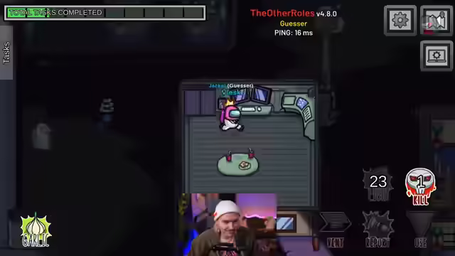 01:14:26Es wird ein neuer Sidekick vorgestellt, der nicht töten kann, was als Strafe angesehen wird. Die Spielenden äußern Überraschung darüber, dass ein Swapper Call richtig war, und diskutieren die Möglichkeit, sich selbst zu swappen. Leafy wurde geswappt, was ihren Status verdächtig macht. Es wird überlegt, ob Maggie noch erraten werden könnte, aber das Hauptziel ist es, die Imposter zu entlarven. Es wird eine Spende erwähnt. Es wird angekündigt, dass die Person möglicherweise an der Dümmste League Edition teilnehmen wird und bittet den Chat um Hilfe bei League of Legends-Fragen. Es wird überlegt, wer Worlds gewonnen hat, wobei Samsung Galaxy, Invictus und FPX genannt werden. Es wird spekuliert, dass Katze behauptet hat, ein Swapper zu sein, und es wird ein roter Flash erwähnt. Es wird diskutiert, wo sich die Person zum Zeitpunkt des Flashes befand und wo sie sich mit Kenny in einer Falle befand. Es wird festgestellt, dass Jam eine gute Rolle hat und dass der Medic raus ist. Es wird spekuliert, dass Leafy ein Trapper ist und Blueberry und die Person nicht böse sind. Es wird überlegt, ob ein Button gedrückt werden soll. Es wird festgestellt, dass die Person Handschellen trägt und daher nicht reporten konnte. Es wird vermutet, dass Blueberry die Handschellen gegeben hat und möglicherweise Deputy ist oder später Sheriff geworden ist.