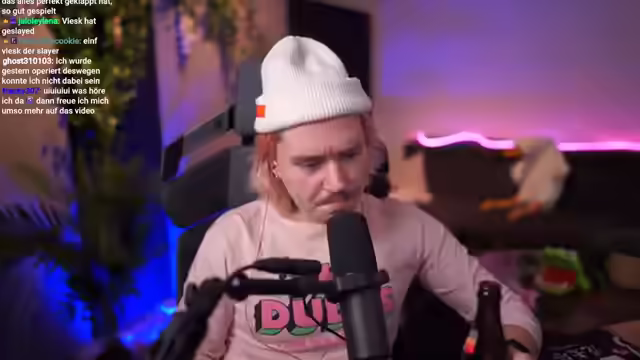 vlesk startete mit Among Us, erwähnte ein Placement und stellte das Video "Der dümmste Fliegt" vor. Es folgten Diskussionen über Thumbnails, Content-Ideen wie eine Gaming-Tierlist-Challenge und Pläne für ein King of Meat Placement. Zudem wurden das WoW Hardcore Event und ein Co-Stream der Worlds angesprochen. Es wurde auch um Hilfe bei der Suche nach einem Discord für Among Us gebeten.