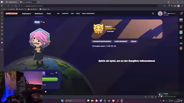 02:21:47Gegen Ende des Streams hat der Streamer seinen Record auf 13 Wins bei 9 Verlusten verbessert. Er reflektiert über die Herausforderungen der heutigen Runden, die er als besonders schwer einstuft, und hebt hervor, dass er in den letzten 8 Runden ohne Verlust geblieben ist. Der Streamer nutzt weiterhin erlernte Strategien, wie das Identifizieren von Regionen anhand von Landschaftsmerkmalen und Verkehrsschildern, um in den letzten Spielen die entscheidenden Wins für den Master-Rang zu sichern. Der Stream endet mit einer ehrgeizigen Note, da der Erfolg der Master-Challenge noch unentschieden ist, aber die Vorbereitung und der Fortschritt deutlich werden.