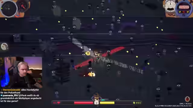 00:43:58Der Streamer setzt den Deadly Days Run fort, optimiert Ausrüstung und Werkbank, und spricht mit Karnivor über den Zeitplan der Win Challenge. Es wird erwartet, dass Kroko seine Placement Games bald beendet und Freddy Qt noch ein Spiel macht, bevor es mit der Win Challenge weitergeht. Es wird überlegt, ob die Win Challenge heute noch stattfinden kann, da einige Teilnehmer möglicherweise erst später am Abend Zeit haben. Es wird beschlossen, die Zeit bis dahin mit Deadly Days zu überbrücken und Krokos Premnik Adventure zu crossfilmen. Der Streamer erklärt Deadly Days als Roguelike/Roguelite Bullet Hell mit Rucksack- und Upgrade-System, ähnlich Vampire Survivors. Es wird über die hohe Frequenz an neuen Spielen von Instinct 3 und deren eigenen Publisher Sidekick gesprochen. Während des Deadly Days Gameplays werden verschiedene Items verkauft und gebaut, um den Charakter zu verbessern. Es wird auch ein Twitch Drop geöffnet, der eine lila Schrotflinte enthält, die vorerst anstelle der AK verwendet wird. Es wird über die Mapgröße in Deadly Days diskutiert und der Wunsch nach einer größeren Map geäußert.