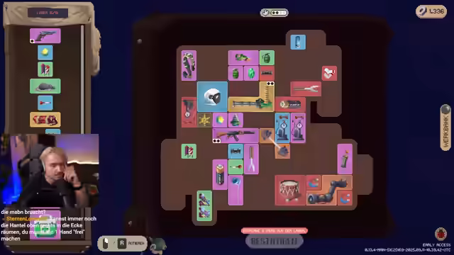 04:37:32Es beginnt mit dem Erhalt einer Minigun, was einen kompletten Umbau des Builds erfordert. Socken werden hinzugefügt, und es wird überlegt, welche Gegenstände entfernt werden müssen, um Platz zu schaffen. Es folgt der Versuch, das Jojo so zu platzieren, dass es die Minigun trifft und schnell nachlädt, während die Hantel die Minigun leichter macht. Es wird überlegt, wie der Sheriff-Stern beide Waffen treffen kann und wie die Gabel auf der Minigun platziert wird. Das rote Fernrohr wird an der Minigun befestigt, um zusätzliche Reichweite zu erzielen. Der Flummi blockiert Platz, was problematisch ist, aber es wird versucht, das Beste daraus zu machen. Es wird nach einem roten Bohrer gesucht, aber nur ein lila Bohrer gefunden. Luftpumpen werden strategisch platziert, um mehrere Waffen zu treffen. Eine rote Batterie wird benötigt, aber es fehlt der Platz dafür. Der Superhelm gibt Intake Speed, aber die Streuung ist tödlich. Es wird versucht, den Kristall über dem Fernglas zu platzieren, um Platz zu sparen. Das Dynamit muss beide Waffen treffen, was jedoch schwierig ist. Es wird überlegt, ob das Dynamit nur die Minigun treffen soll, aber es wird entschieden, dass es beide treffen muss, da am Ende vier Waffen im Build sein sollen. Die Schlange wird anstelle des Helms platziert und sofort verbessert. Das Ziel ist es, jeden Platz um eine Waffe herum effizient zu nutzen, auch wenn dies bedeutet, dass später noch einmal umgebaut werden muss.