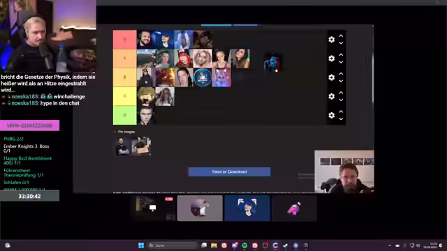 05:03:32Es beginnt mit dem bevorstehenden Bosskampf und der Überlegung, danach in den Endlosmodus zu wechseln. Es werden Items wie eine doppelte Kriegstrommel, ein Wagensternlevel und ein Startupgrade gefunden. Der Boss hat aufgrund des Gefahrenlevels relativ viel HP. Die Items müssen eingesammelt werden. Ein Jojo wird verbessert. Es wird festgestellt, dass die ganze Zeit auf andere Gegner als den Boss geschossen wurde. Der Boss wird besiegt und der Run ist abgeschlossen. Es werden 30 Millionen Fürsatzschaden erzielt und sehr viele Äpfel erhalten. Der Endlosmodus könnte gestartet werden, aber es geht zurück zum Desktop, da die Win-Challenge fortgesetzt werden muss. Es wird erwähnt, dass wenig Schlaf vorhanden war und die Augen müde aussehen. Es wird ein Wikipedia-Bingo gespielt, bei dem man über Links von einer Startseite zu einer Zielseite kommen muss. Es wird über das Inventar-Management im Endlosmodus gesprochen und dass es Cracks geben wird, die zeigen, wie das Inventar aufgebaut sein muss. Es wird eine gute Balance zwischen Leveln, Items sammeln und schnellem Durchrushen der Level benötigt, um das Gefahrenlevel nicht zu hoch werden zu lassen. Es wird vermutet, dass im aktuellen Endlosmodus nicht weit gekommen wird, da das Gefahrenlevel bereits zu hoch ist. Es wird erwähnt, dass die Win-Challenge noch Schlafen beinhaltet und diese abgehakt werden muss. Es wird auf die Unterhaltung durch den Chat gehofft, da nicht viel Energie vorhanden ist und die anderen ins Voice kommen sollen. Gestern wurde 17 Stunden und 12 Minuten gestreamt und bis 5 Uhr 30 morgens gemacht, bevor nach Hause gefahren wurde. Es wurde eine Stunde lang nicht geschlafen und um 9 Uhr 30 wieder aufgestanden, um den Schlafrhythmus nicht zu töten.