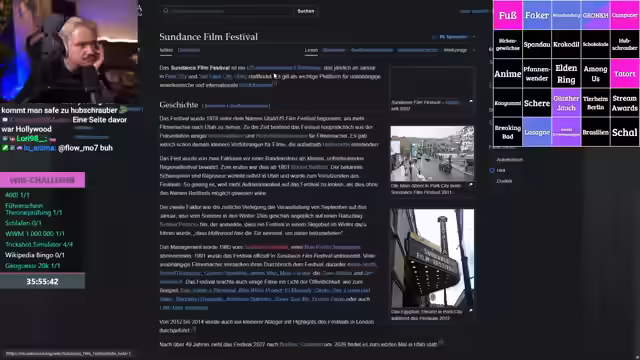07:38:25Die Spieler beginnen mit dem Wikipedia-Bingo und suchen nach den vorgegebenen Begriffen. Es wird die Strategie besprochen, von der Twitch-Seite aus zu starten und sich vorzuarbeiten. Einige Spieler finden schnell Begriffe wie Gronkh, Mondlandung und Fuß, während andere Schwierigkeiten haben. Es wird über die Schwierigkeit des Cheatens mit Strick-Elf diskutiert und beschlossen, diese Option zu entfernen. Die Spieler suchen nach Begriffen wie Faker, Mittelfinger und Brasilien. Es gibt humorvolle Kommentare und Sticheleien, während die Spieler ihre Funde teilen. Karli sucht nach Tatort und Günther Jauch, während andere nach Schokolade und Breaking Bad suchen. Es wird festgestellt, dass die Suche nach bestimmten Begriffen schwieriger ist als erwartet. Die Spieler tauschen sich über ihre Fortschritte aus und helfen sich gegenseitig. Es wird die Frage aufgeworfen, ob Kroko während seiner Abwesenheit schläft. Schließlich werden Begriffe wie Lasagne, Tierheim Berlin, Schokolade, Anime, Stream Awards, Eltenring, Hubschrauber, Schere und Pfannenwender gefunden. Die Spieler stellen fest, dass das Spiel mehr Spaß macht als erwartet, obwohl es anstrengend ist. Es wird überlegt, wie man von bestimmten Begriffen zu anderen gelangen kann, und die Zuschauer werden um Hilfe gebeten.