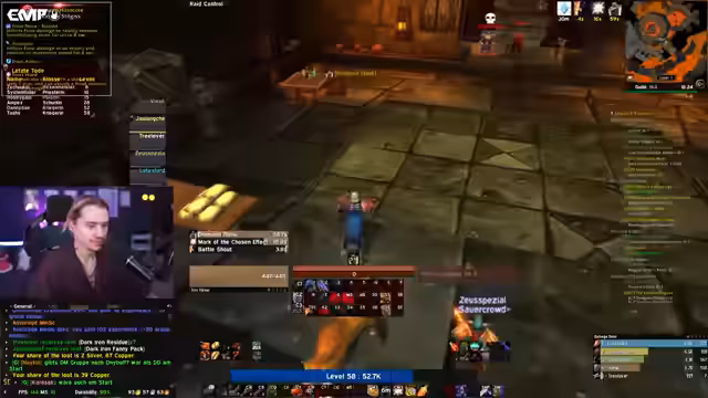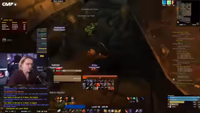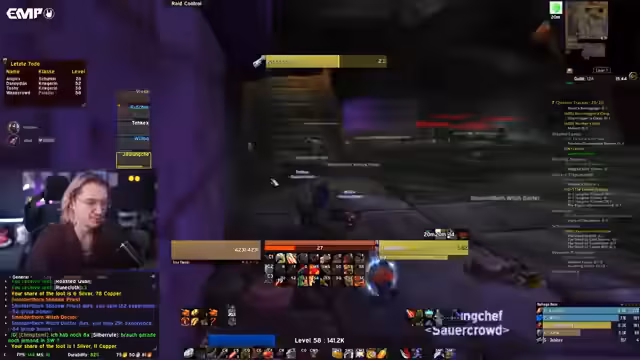 10:24:40Der Stream konzentriert sich auf den Endspurt zum Level 60, wobei der Streamer seine Rolle als Tank reflektiert. Er berichtet von einem Gefühl, anfangs als Tank weniger gefragt zu sein, aber nach dem Tod der anderen Tanks in den Fokus zu rücken. Zudem erwähnt er eine Phase, in der er mit der Restegruppe unter seinem Level in Dungeons wie dem Kloster gezogen ist, was ihn frustriert hat. Ein kurzer Abstecher ins Gildendrama führt zu einer Tempel-Gruppe mit Mark Oliver, Latex-Lord, Draganreider, Hanno und Genie. Die Gruppe beginnt ihre Erkundungen im Tempel und diskutiert die Aggro-Problematik durch die großen Level-Unterschiede zwischen den Spielern.