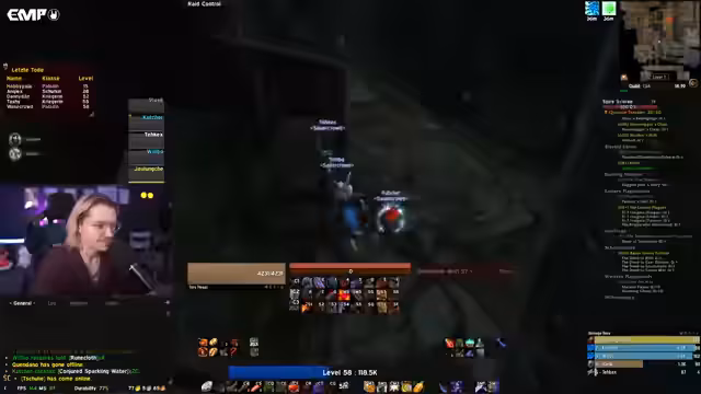 05:00:48Es kommt zu technischen und UI-Problemen. Der Streamer und andere Spieler haben fehlerhafte Nameplate-Farben in ihrem UI-Add-on, was die Identifizierung von Gegnerschwierigkeiten erschwert. Trotzdem oder gerade deswegen müssen sich die Spieler stark auf die Kommunikation und taktische Anpassungen im Kampf verlassen. Beim Boss 'Dark Iron Spymaster' wird eine spezifische Taktik besprochen, bei der ein Tank die Aggression auf sich zieht, während der Rest der Gruppe abwartet. Der Streamer appelliert, bei unklaren Situationen ruhig zu bleiben und nicht panisch zu agieren, da die Gruppe bereits gut überlevelt ist.