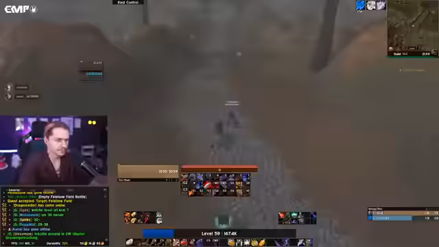 00:19:20Nach dem gescheiterten Tempel-Vorfall setzt der Streamer seine Quests fort, um Level 58 zu erreichen. Er absolviert die Escort-Quest 'Guardians of the Altar' im Moonglade, wobei er eine NPC begleiten muss, die heilen kann. Die Quest wird erfolgreich abgeschlossen, und er erreicht das ersehnte Level 58. Gleichzeitig meldet sich im Chat, dass auch weitere Mitglieder der Gildengruppe wie Mitashi und Kevin kurz vor Level 60 verstorben sind, was für große Bestürzung sorgt.