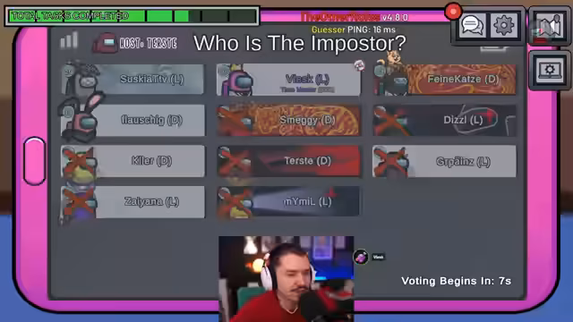 05:49:46Eine dramatische Enthüllung folgt, als Smaggy vorgibt, Terzter zum unsterblichen Medic zu machen. Dies führt zu einer Verwirrung über Sheriffs und Medic-Rollen. Ein Spieler gibt zu, Smaggy getötet zu haben, weil er annahm, dieser sei der Medic und könne nicht vom Warlock getötet werden. Der Streamer ist verwirrt über die logischen Widersprüche in den Aussagen der anderen Spieler und die fehlenden Stiche auf den angeblichen Medic.