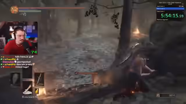 02:54:32Nach dem Sieg über den Dancer plant Streamer vlesk den weiteren Verlauf des No-Death-Marathons. Er will vor dem Kampf mit Aldrich noch die Dragonslayer Armor bezwingen, um ein Upgrade für seine Waffe zu erhalten, was ihm mehr Sicherheit geben soll. Er gibt einen Ausblick auf den geplanten Abschluss des gesamten 1-3-Marathons, der wahrscheinlich am Montag oder Dienstag stattfinden wird, falls es zu keinen Toden mehr kommt, und spricht über seine persönliche Einstellung zu Elden Ring und anderen Spielen im Vergleich zur Dark Souls-Reihe.