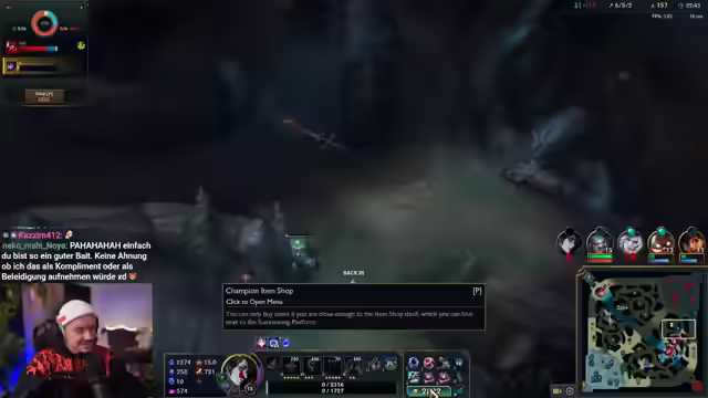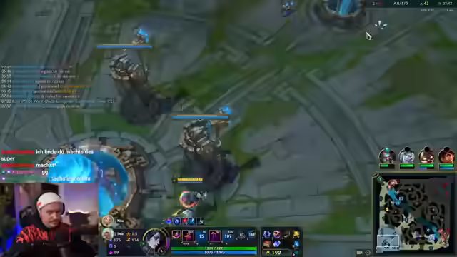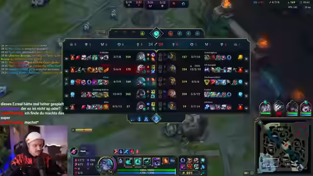 02:57:43Es wird über die Championauswahl im Custom Game von League of Legends diskutiert. Zunächst sollen die Spieler zweimal auf ein Fragezeichen klicken, um zufällige Champions zu erhalten, die sie dann im Chat nennen. Die Idee, drei Champions auszuwählen, wird verworfen, um den Zufallsfaktor zu erhöhen. Es folgt eine Diskussion über den Spielmodus: Aram wird als Option genannt, wobei betont wird, dass es im Custom-Modus keine Re-Rolls gibt, was potenziell zu unvorteilhaften Champion-Zusammenstellungen führen könnte. Es wird kurz überlegt, ob die Einstellungen korrekt sind und ob die richtige Karte ausgewählt wurde. Die Gruppe einigt sich auf den All Random Modus. Ein kurzer Vergleich zwischen Fußballtorwart Gianluigi Buffon und League of Legends-Spielern wird angestoßen, wobei überlegt wird, welcher Spieler welchen Fußballer repräsentiert. Abschließend wird über die Rollenverteilung im Fußball und deren Entsprechung in League of Legends gesprochen, wobei AD-Carrys als Stürmer und Jungler als Mittelfeldspieler gesehen werden.
