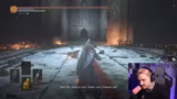 00:30:28Nachdem das Tutorial DLC gemeistert wurde, navigiert der Streamer in das Gebiet 'Grave Tender'. Er zeigt sich hier verwirrt über das Leveldesign und findet den Weg zur Bosskammer nur mit Hilfe des Chats. Der Fokus verlagert sich sofort auf den Boss 'Schwester Friede'. Er beschreibt seinen Kampfplan ausführlich, der hauptsächlich aus gezielten Backstabs besteht, verliert aber im ersten Versuch das Leben, weil er die Angriffsmuster des Bosses nicht richtig lesen kann.