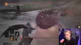 01:04:10Nach dem Sieg über Friede zeigt der Streamer erhebliche Unsicherheit beim Navigieren durch das zweite DLC-Gebiet. Er findet den Weg zu den Bossen nur langsam und mit Hilfe des Chats. Der Kampf gegen 'Schwarzfraß Midir' wird zu einem der längsten und stressigsten Momente des Streams. Obwohl der Streamer stark überpowert ist, benötigt er viele Heilungen und besiegt Midir erst nach mehreren intensiven Versuchen und unter hohem Druck.